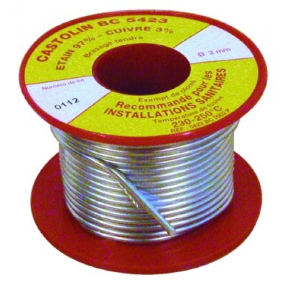 Припой для мягкой пайки на основе 97% олова с добавлением 3% меди, Температура sol.-liq. 230-250гр.С. Применяется для соединения труб в водоснабжении.