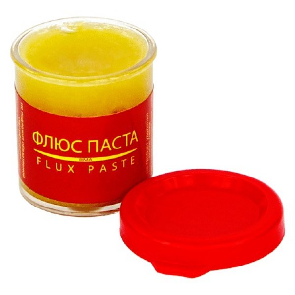 Флюс паста применяется для пайки низкотемпературными припоями. Благодаря своей пластичной пастообразной форме позволяет применять его к элементам любой конструкционной сложности. Состав: Вазелин, ПАВ, триэтаноламин, канифоль сосновая, органический активатор. Температурный интервал активности: 120-300С.