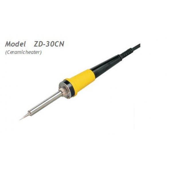 Паяльник для пайки малогабаритных компонентов. Полипропиленовая ручка, керамический нагреватель и особое необгораемое жало в виде конуса для прецизионной пайки.