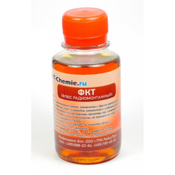 Применяется для пайки и лужения электромонтажных элементов, печатных плат и выводов элементов радио электроники в изделиях РЭА. Нейтральный флюс. Состав: канифоль, тетрабромид дипентена, спирт.