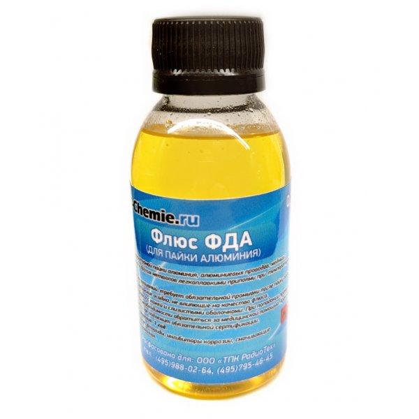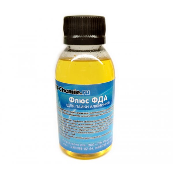 Флюс для пайки алюминия, нержавеющих деталей, никеля, меди и других металлов. Активный флюс, требует обязательной смывки водой или спиртом. Состав: триэтаноламин, аминоэтилэтаноламин, моноэтаноламин и др. активаторы. Рабочая температура пайки: 150-320C.