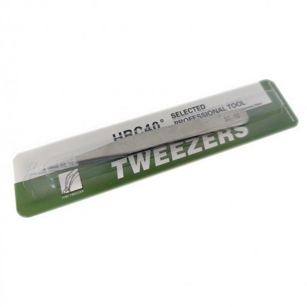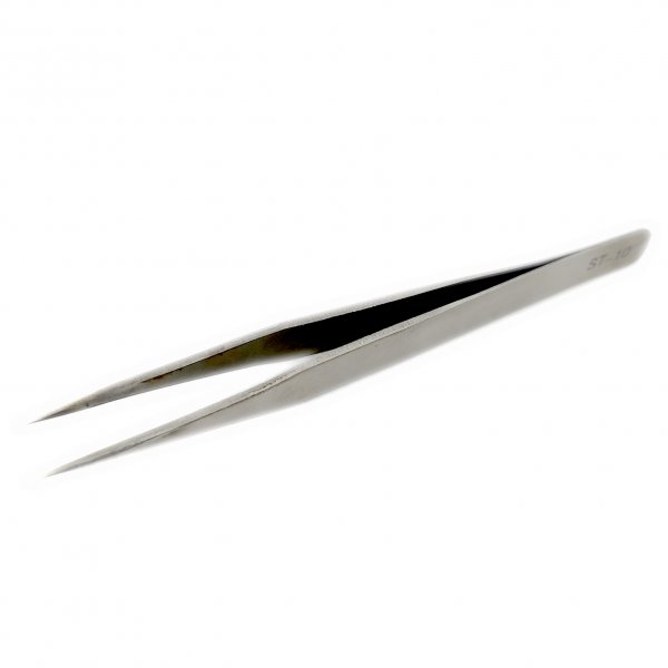 Металлический, антимагнитный пинцет для монтажа SMD компонентов, прямой, 110мм. материал: немагнитная сталь.