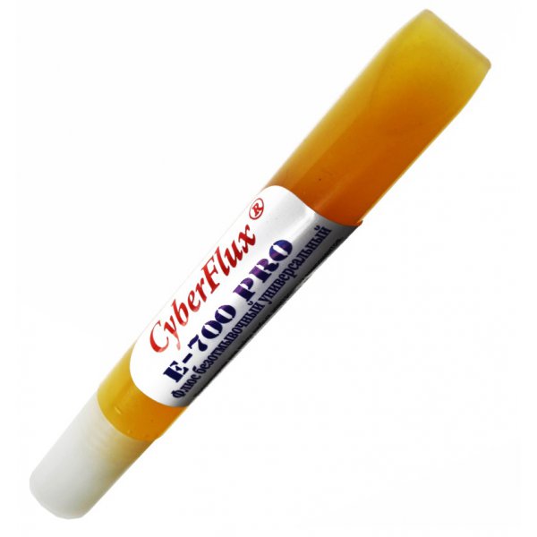 Флюс Е-700 выигрывает тем, что при пайке практически не кипит, что повышает качество пайки. Допускается использование в высоковольтных узлах сварочного оборудования. Во время пайки используйте вентиляцию! Рекомендуется как универсальный флюс как для контактной, так и для бесконактной пайки. В отличии от ряда импортных аналогов не содержит растворимых в воде и соответственно электропроводных карбоновых кислот, минеральных кислот, галогенидов тяжёлых металлов, производных анилина и фенола.