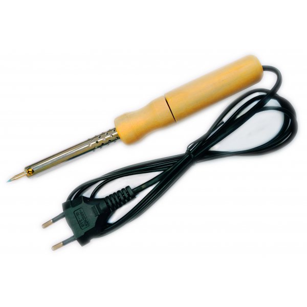 Уменьшенная деревянная ручка (ф=23мм). Специальное никелированное долговечное жало (остроконечное, конус) ф=4,5мм х 55мм. Длина паяльника - 21см. ГОСТ Р 52161.2.45-2008.
