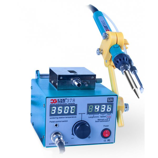 Станция с блоком автоматической подачи припоя. Значительно упрощает процесс пайки. Механическая регулировка температуры с цифровым дисплеем. Совместима с жалами типа 900M-T.
