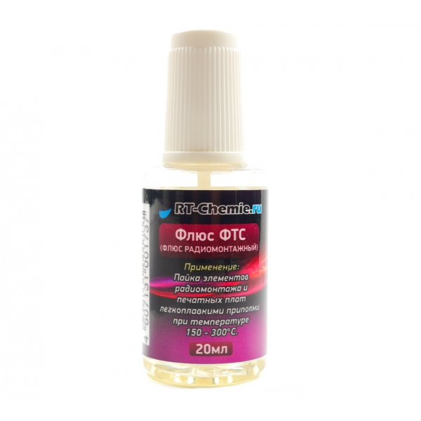 Флюс паяльный радиомонтажный. Назначение: применяется для пайки элементов радиомонтажа и печатных плат с водной отмывкой остатков после пайки. Температурный интервал активности: 150-300С. Отмывка: Вода или спирто-бензиновая смесь. Состав: спирт АИПС, кислота салициловая, триэтаноламин.