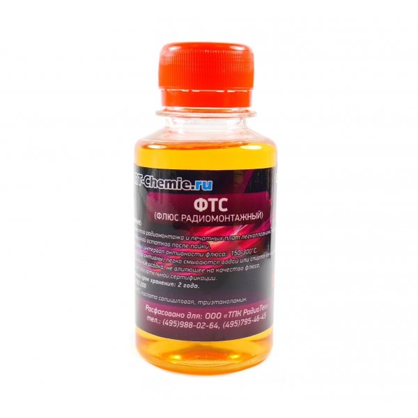 Флюс паяльный радиомонтажный. Применяется для пайки элементов радиомонтажа и печатных плат с водной отмывкой остатков после пайки (водосмываемый)