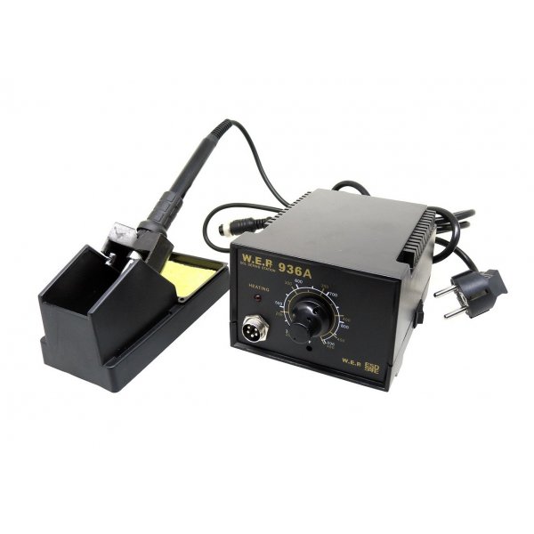 Индикация температуры: светодиод. Температурный режим пайки: 200-480С, мощность станции 60вт, напряжение питания паяльника 24в, антистатическая.