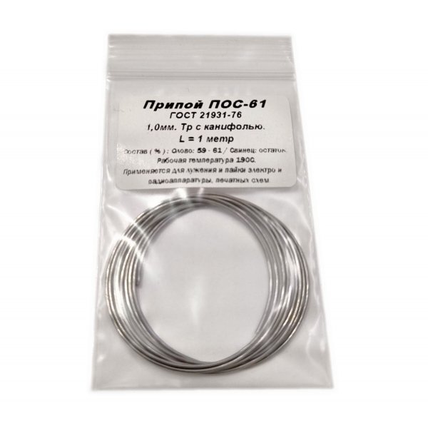 Состав ( % ) : Олово: 61 / Свинец 39. Рабочая температура: 190°C. Спираль 1м. Отрасль применения: электроника, электротехника. 5,5г