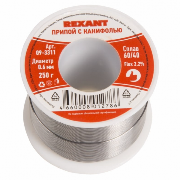 Состав ( % ) : Олово: 59,5 - 60,5 / Свинец: остаток. Рабочая температура: 190 °C Отрасль применения: электроника, электротехника.
