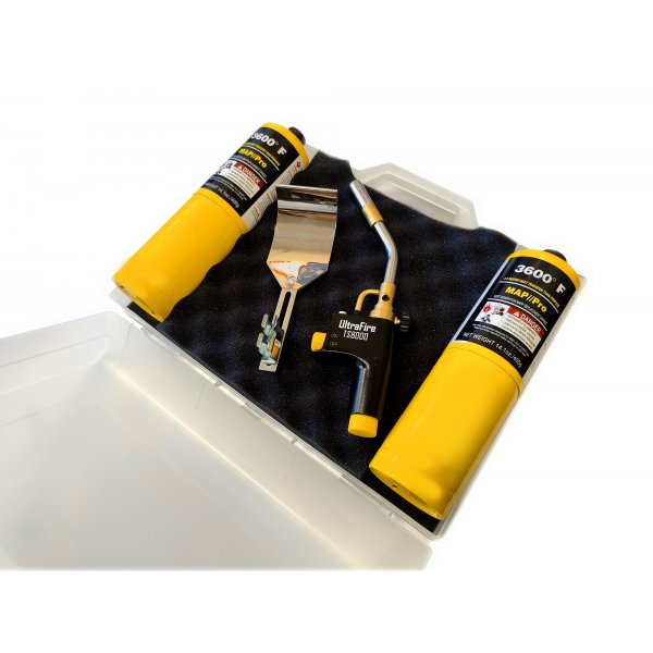 Регулятор для оптимизации расхода топлива и тепловой мощности. Курок зажигания/выключения для удобства экономии топлива. Кнопка-фиксатор позволяет работать, не держа курка. Сменное латунное сопло формирует вихревое пламя максимальной мощности. Регулировка давления работает в любом положении. Литой алюминиевый корпус. Тепловая мощность 3432 Вт. Аналог горелки Bernzomatic 757. Газовый баллон MAP/Pro (МАПП) 1л (453гр) - температура горения 2100С. В комплекте Рефлектор GR-270 для MAPP (МАПП) горелки