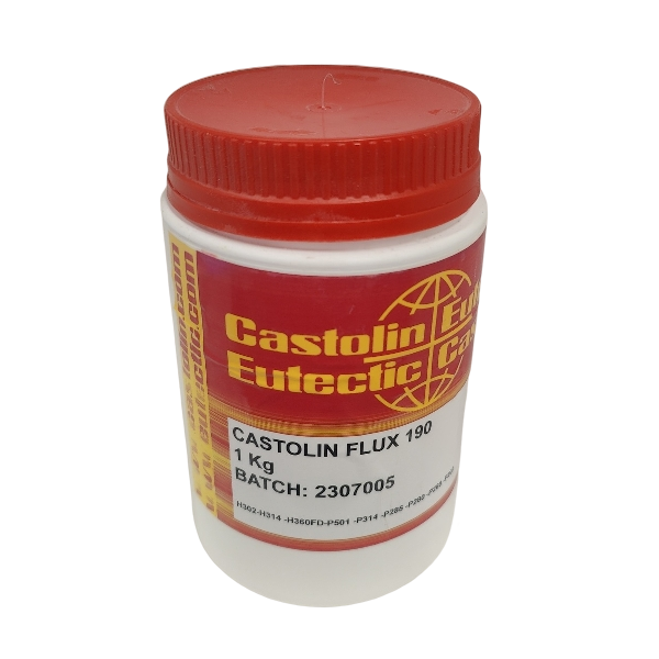 Флюс для пайки алюминия. Применяется совместно с припоем Castolin Aluflam 190, форма поставки флюса: порошок. Коррозионные остатки флюса. Температура плавления 500 - 700гр.С