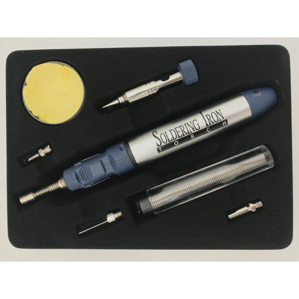 Набор для микропайки включает в себя: газовый паяльник с встроенной подставкой, припой в индивидуальном пластиковом контейнере, 4 насадки (игольчатый наконечник, наконечник d5 mm, двухплоскостной нож), контейнер с губкой для чистки насадок. Температура в режиме паяльника - 450 градусов С. Также работает в режиме горелки (1300С) . Вместимость емкости для газа - 30гр.