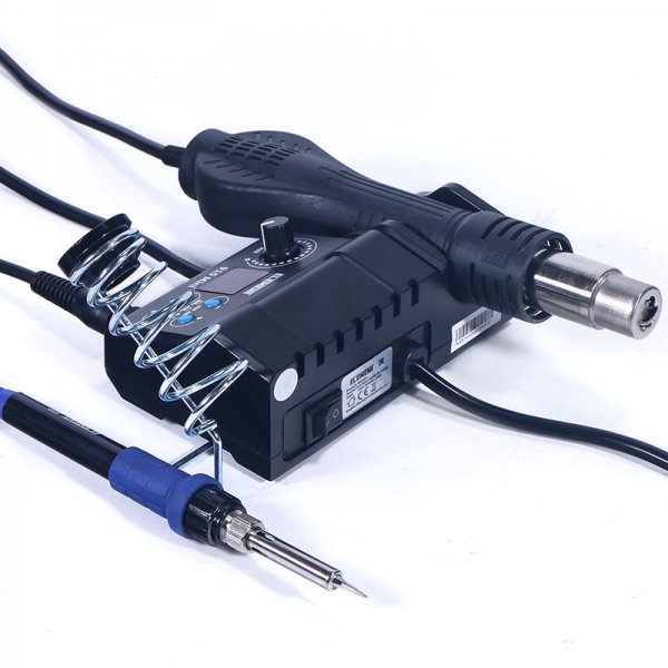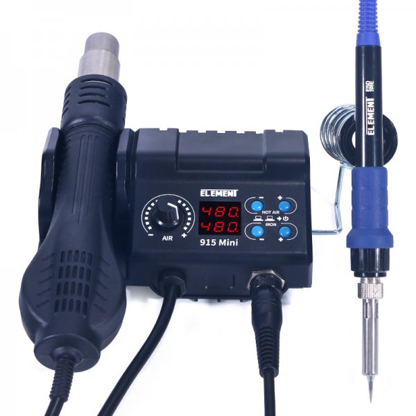 PID замкнутая система датчиков, микроконтроллер для цифрового отображения данных и контроля температуры, большая стартовая мощность, быстрый разогрев, стабильность температуры с точностью до 1°C, на которую не влияет объем выдуваемого воздуха. Все эти преимущества делают пайку и демонтаж базопасными для таких чувствительных компонентов, как SOIC, PLCC, QFP, BFA и т.д.