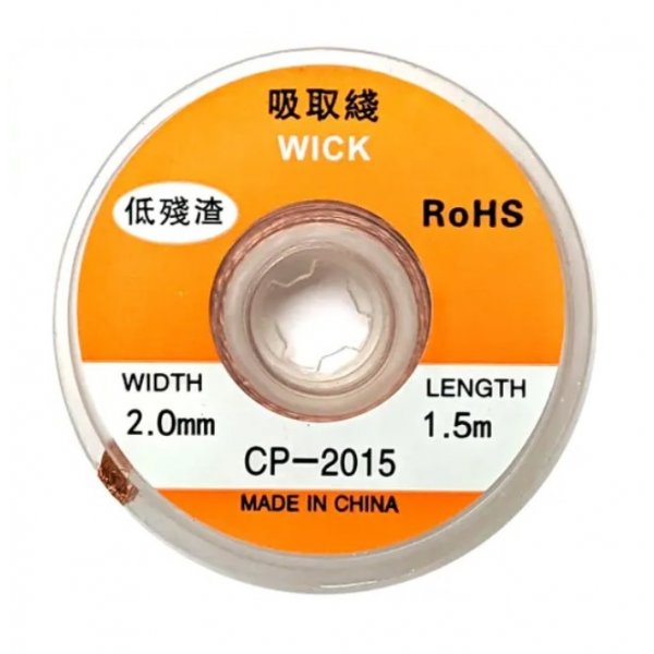 Обеспечивает деликатное удаление припоя при выпаивании радиокомпонентов на печатных платах. Применение: Приложить оплетку к месту, где требуется удалить припой, и сверху поднести жало паяльника. В процессе нагрева припой впитывается в оплетку за счет капиллярного эффекта. После выполнения работ необходимо отрезать насыщенную припоем часть оплетки.