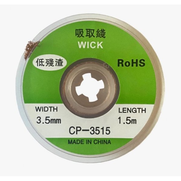 Обеспечивает деликатное удаление припоя при выпаивании радиокомпонентов на печатных платах. Применение: Приложить оплетку к месту, где требуется удалить припой, и сверху поднести жало паяльника. В процессе нагрева припой впитывается в оплетку за счет капиллярного эффекта. После выполнения работ необходимо отрезать насыщенную припоем часть оплетки.