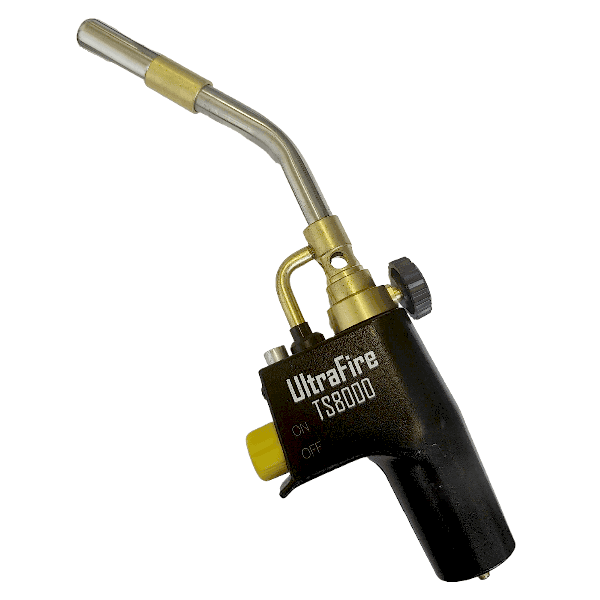 Регулятор для оптимизации расхода топлива и тепловой мощности. Курок зажигания/выключения для удобства экономии топлива. Кнопка-фиксатор позволяет работать, не держа курка. Сменное латунное сопло формирует вихревое пламя максимальной мощности. Регулировка давления работает в любом положении. Литой алюминиевый корпус. Тепловая мощность 3432 Вт. Аналог горелки Bernzomatic TS8000.