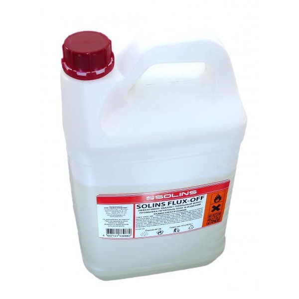 SOLINS FLUX-OFF – сбалансированная смесь растворителей, быстро и надежно удаляющая флюс и прочие загрязнения после пайки. ФЛЮКС-ОФФ удаляет масла, смазки, битумы, воски и другие нефтяные загрязнения. После испарения, средство не оставляет следов на обрабатываемых поверхностях.