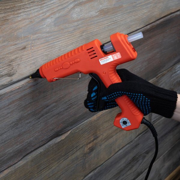 Для работы с пистолетом необходимо использовать клеевые стержни диаметром 11 мм. Универсальные клеевые стержни прочно соединяют в любом сочетании детали из картона, ткани, древесины, кожи, резины, керамики, пластика, стекла, металла, пенопласта и т.д. С помощью механизма подачи клея и выходного сопла возможно равномерное или точечное нанесение клея на поверхность.