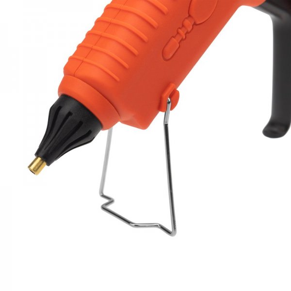Корпус клеевого пистолета изготовлен из ударопрочной пластмассы и имеет скобу для установки в режиме ожидания.