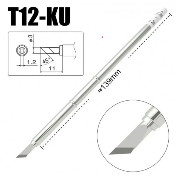 Основные характеристики жал Quicko T12: Рабочая температура: до 450°C. Термодатчик: встроенная термопара. Долговечность: 30-50 тыс. паек. Диаметр: 5.5мм