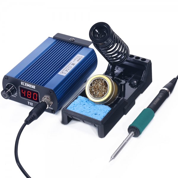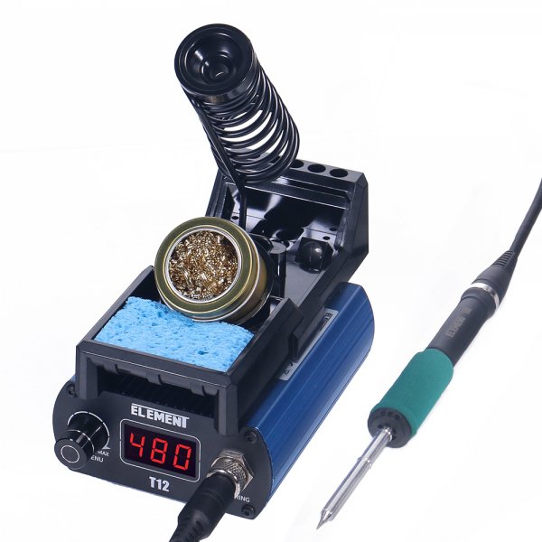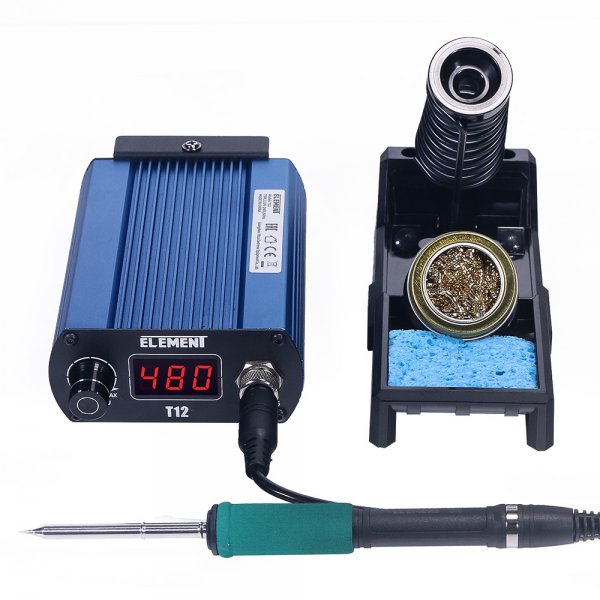 Индикация температуры цифровая(LED дисплей). Температурный режим пайки: 200-480С, максимальная мощность станции 75вт, напряжение питания паяльника 24в, антистатическая. Корпус из металла, Габариты: