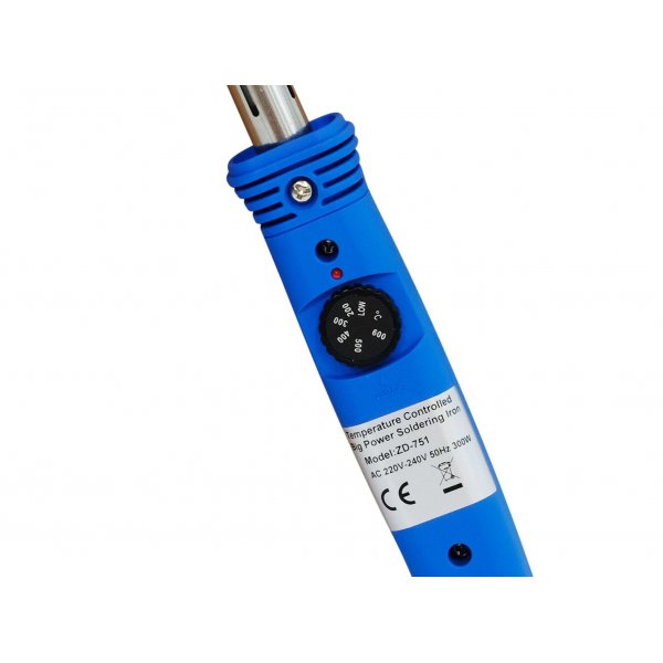 Паяльник-молоток с регулировкой температуры, мощностью 300вт. Нагреватель керамического типа. Теплостойкая пластиковая ручка, силиконовый кабель. Регулировка на ручке паяльника позволяет понижать температуру наконечника не опасаясь перегрева термочувствительных элементов.
