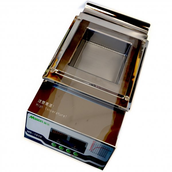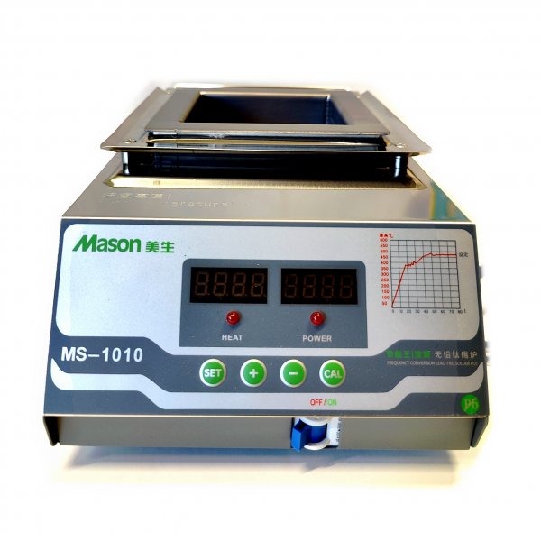 Габариты тигеля: D=100мм х 100мм x 45мм(H), 3800г припоя. Диапазон рабочих температур 100-500С. Паяльная ванна Mason MS-1010 100х100 для лужения выводов малоразмерных электронных компонентов, в том числе демонтированных микросхем для повторного их использования. Усовершенствованная паяльная ванна нового поколения. В данной модели есть цифровая индикация температуры. Материал тигеля - нержавеющая сталь. Точная система регулировки температуры в широком диапазоне.