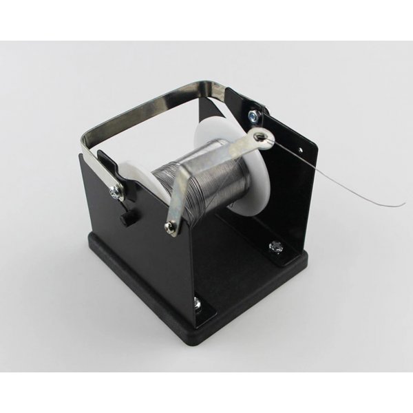 Простое приспособление практически не требует дополнительного пространства на вашем рабочем месте. Подставка предназначена для катушки припоя до 1 кг. Направляющее кольцо предохраняет припой от запутывания.