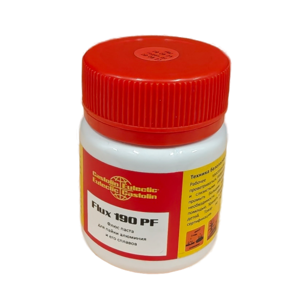Флюс для пайки алюминия. Применяется совместно с припоем Castolin Aluflam 190, форма поставки флюса: паста. Коррозионные остатки флюса. Температура плавления 500 - 700гр.С