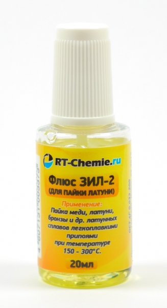 Специально разработан НИИ "ЗИЛ" для пайки латунных радиаторов автомобилей. Применятся для пайки меди, латуни и др. латунных сплавов легкоплавкими припоями. Состав: Хлорид цинка, хлорид аммония, хлорид железа, соляная кислота, вода. (активный)