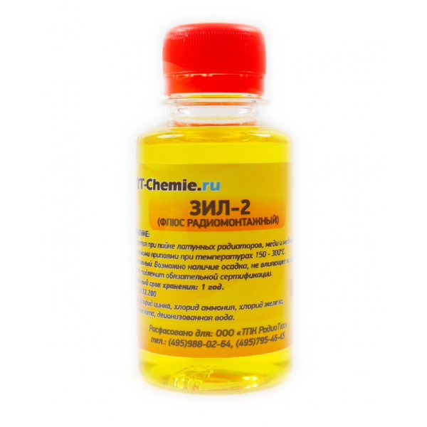 Специально разработан НИИ "ЗИЛ" для пайки латунных радиаторов автомобилей. Применятся для пайки меди, латуни и др. латунных сплавов легкоплавкими припоями. Состав: Хлорид цинка, хлорид аммония, хлорид железа, соляная кислота, вода. (активный)