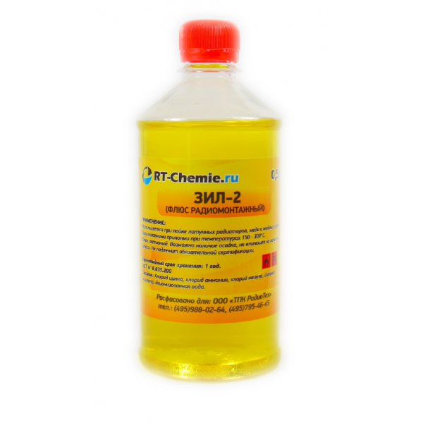 Специально разработан НИИ "ЗИЛ" для пайки латунных радиаторов автомобилей. Применятся для пайки меди, латуни и др. латунных сплавов легкоплавкими припоями. Состав: Хлорид цинка, хлорид аммония, хлорид железа, соляная кислота, вода. (активный)
