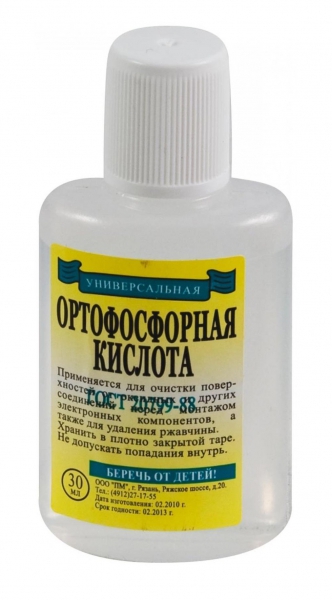 Применяется как флюс или в качестве 5% водного раствора как преобразователь ржавчины. (Активный флюс)
