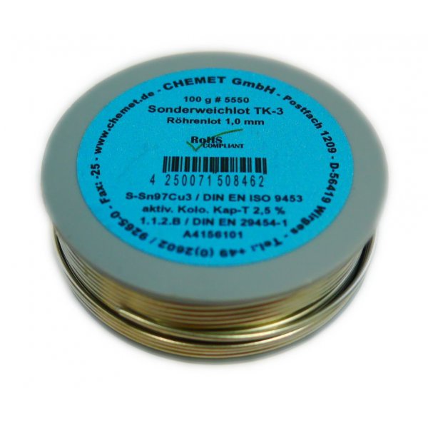 Sn97/Cu3 (Олово 97%, Медь 3%) Рабочая температура: 270 - 300°C Отрасль применения: электроника, электротехника, медные трубы для питьевого трубопровода, отопительная и холодильная техника.