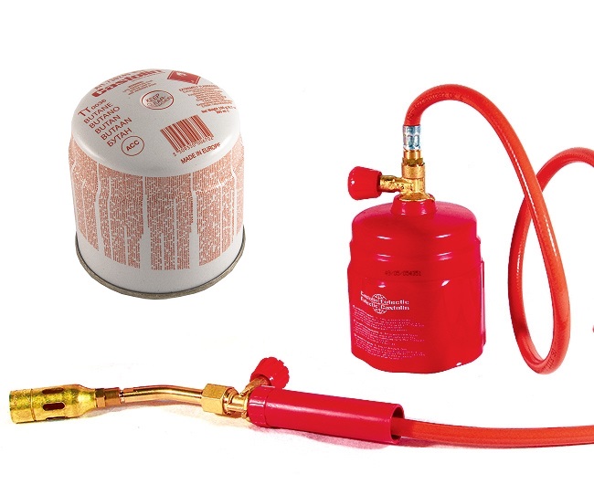 Горючий газ - бутан. Гибкий шланг длиной 1,4 м. облегчает работу с горелкой. Картридж с газом Butan 190 поставляется в комплекте с горелкой. Максимальная температура горения газа 1750°С.