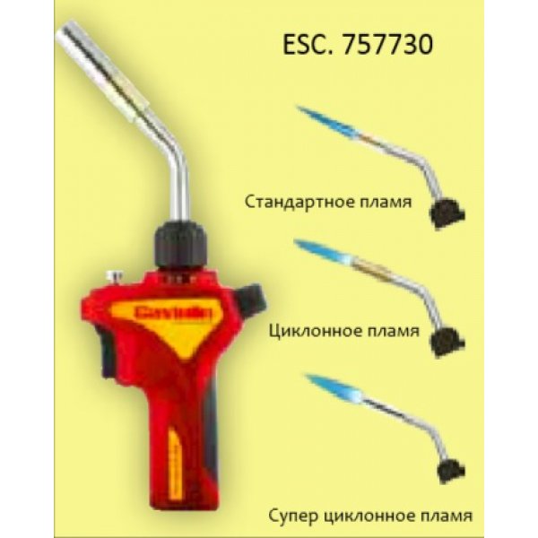 Универсальная горелка для пайки под баллоны MAPP, MAP//Pro и GAS//Pro. Набор: горелка + насадки 3шт. разной мощности (Fine Flame, Cyclone Flame, Super Cyclone Flame). Упаковка: картонная коробка. Поставляется без баллона. Температура пламени 2100°С.