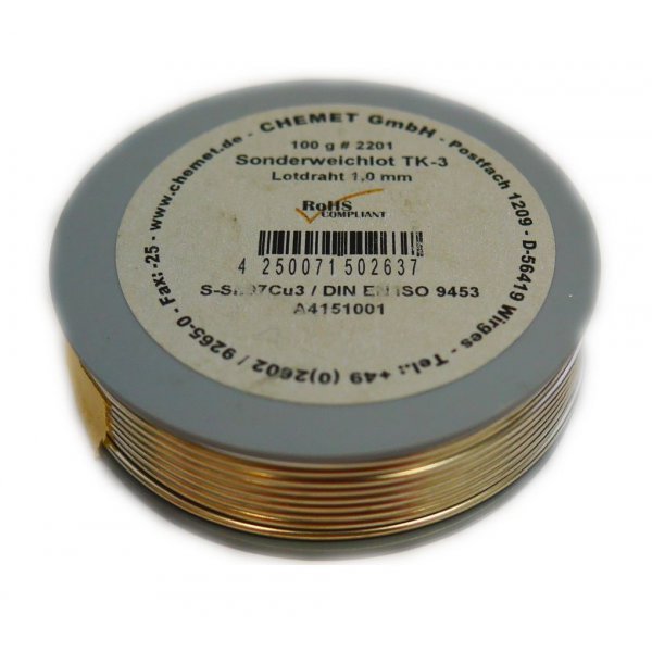 Sn97/Cu3 (Олово 97%, Медь 3%) Рабочая температура: 270 - 300°C Отрасль применения: электроника, электротехника, медные трубы для питьевого трубопровода, отопительная и холодильная техника.