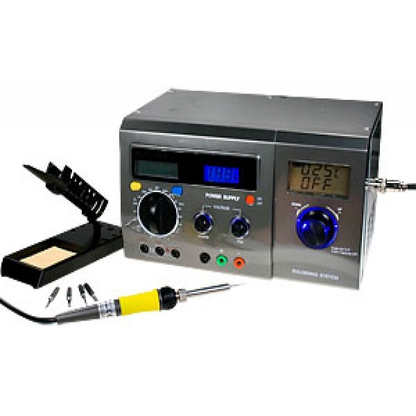 Паяльная станция цифровая с мультиметром и регулируемым ИСТОЧНИКОМ ПИТАНИЯ 1,2-12в, ток до 2 А. Станция предназначена для свинцовой и бессвинцовой пайки. Снабжена современной антистатической защитой.